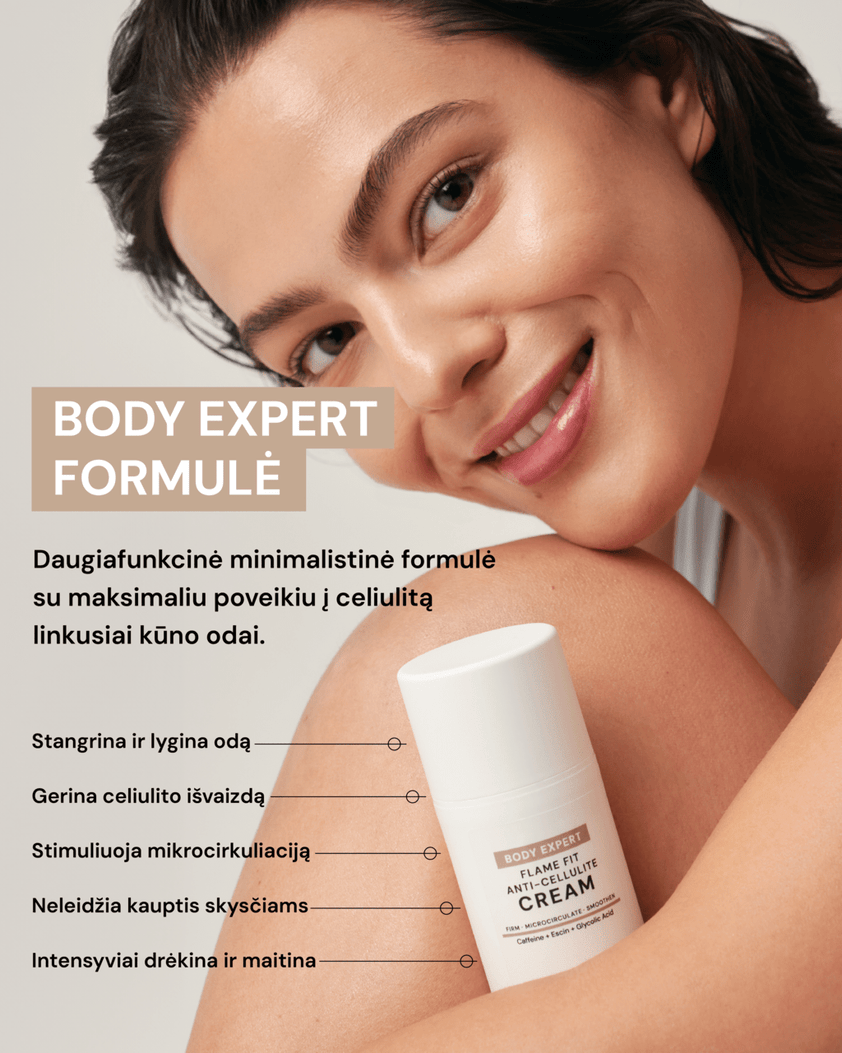 1 lygis – aktyvina riebalų sankaupų skaidymą ir gerina mikrocirkuliaciją, padedant mažinti esamus celiulito požymius.