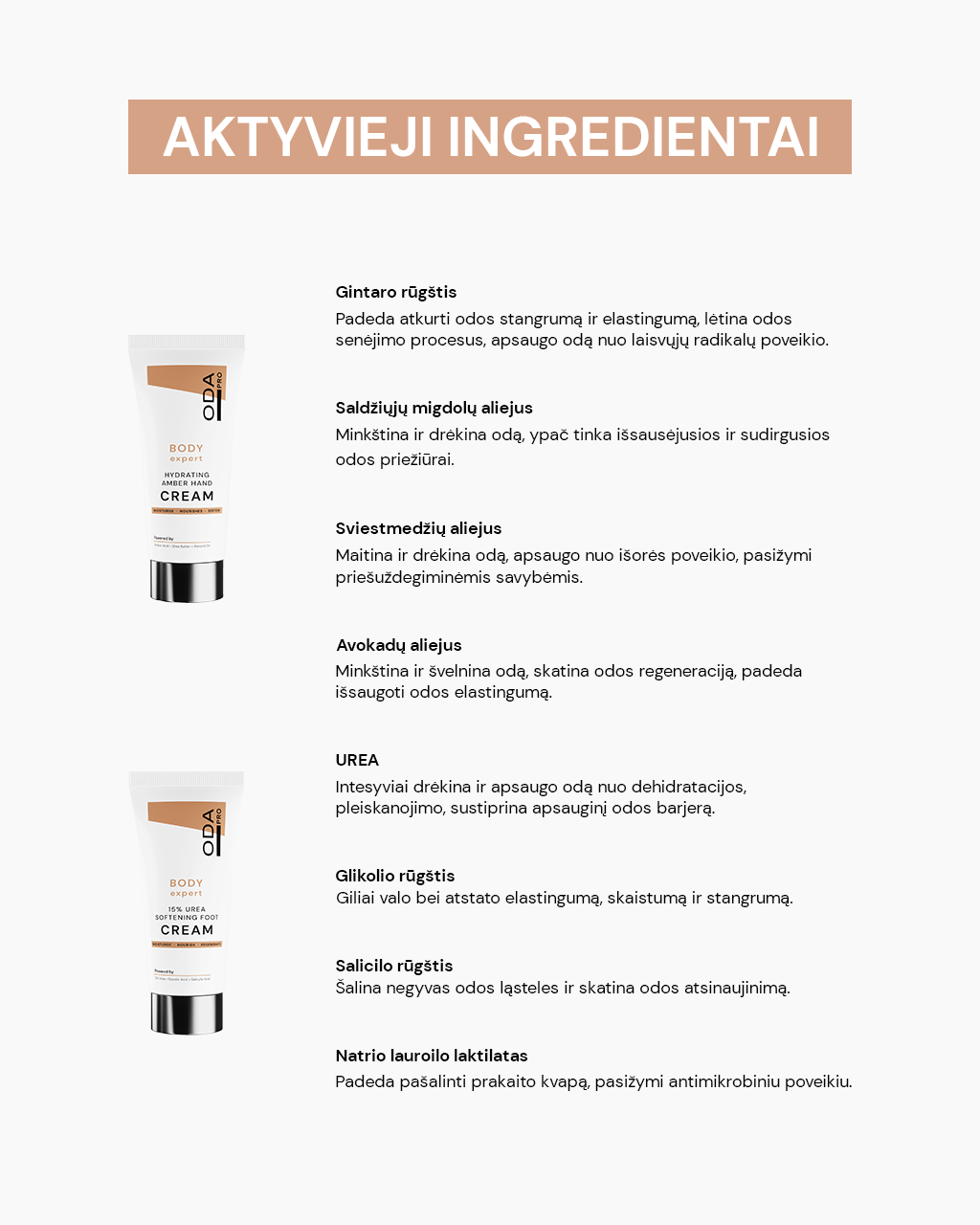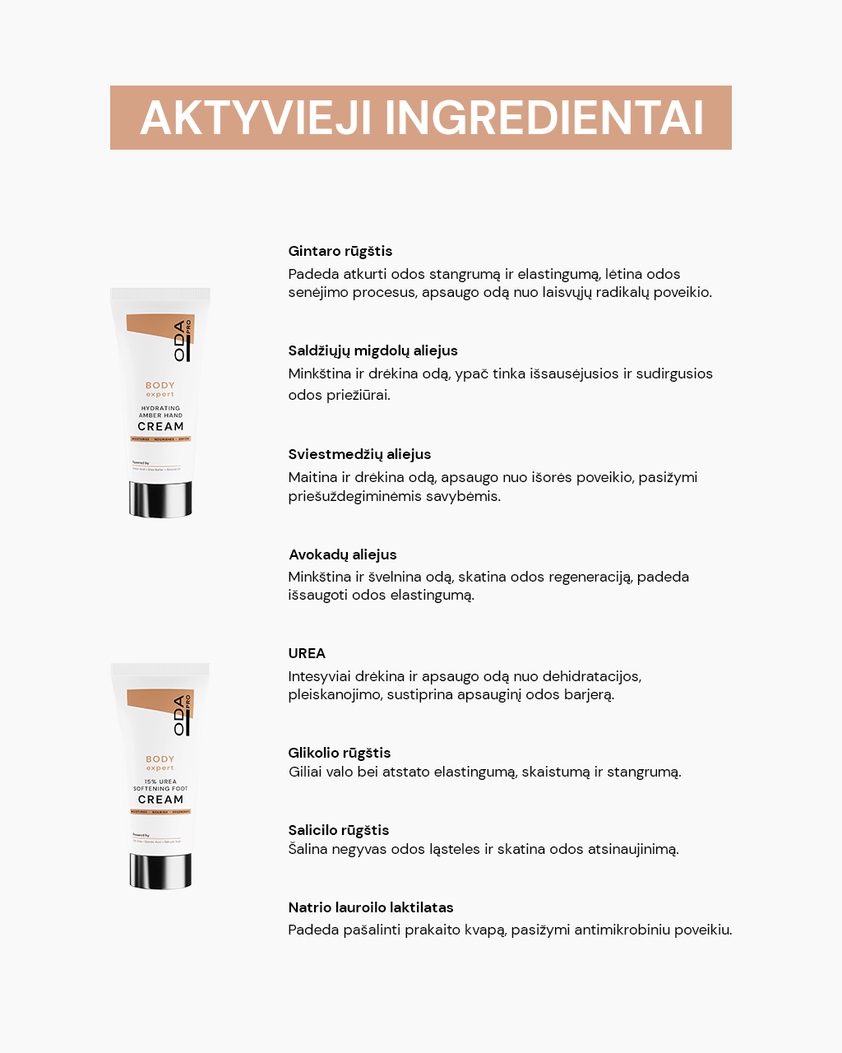 ODA PRO ekspertų sukurtas efektyviai drėkinantis rankų ir pėdų odos priežiūros rinkinys, 2 produktai