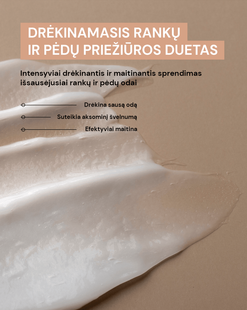 PRIVALUMAI: Drėkina sausas pėdas + Giliai maitina + Skatina regeneraciją